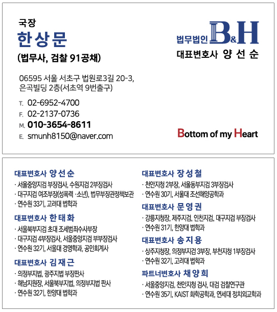 검찰 출신 변호인단이 함께하는 법무법인 B&H는